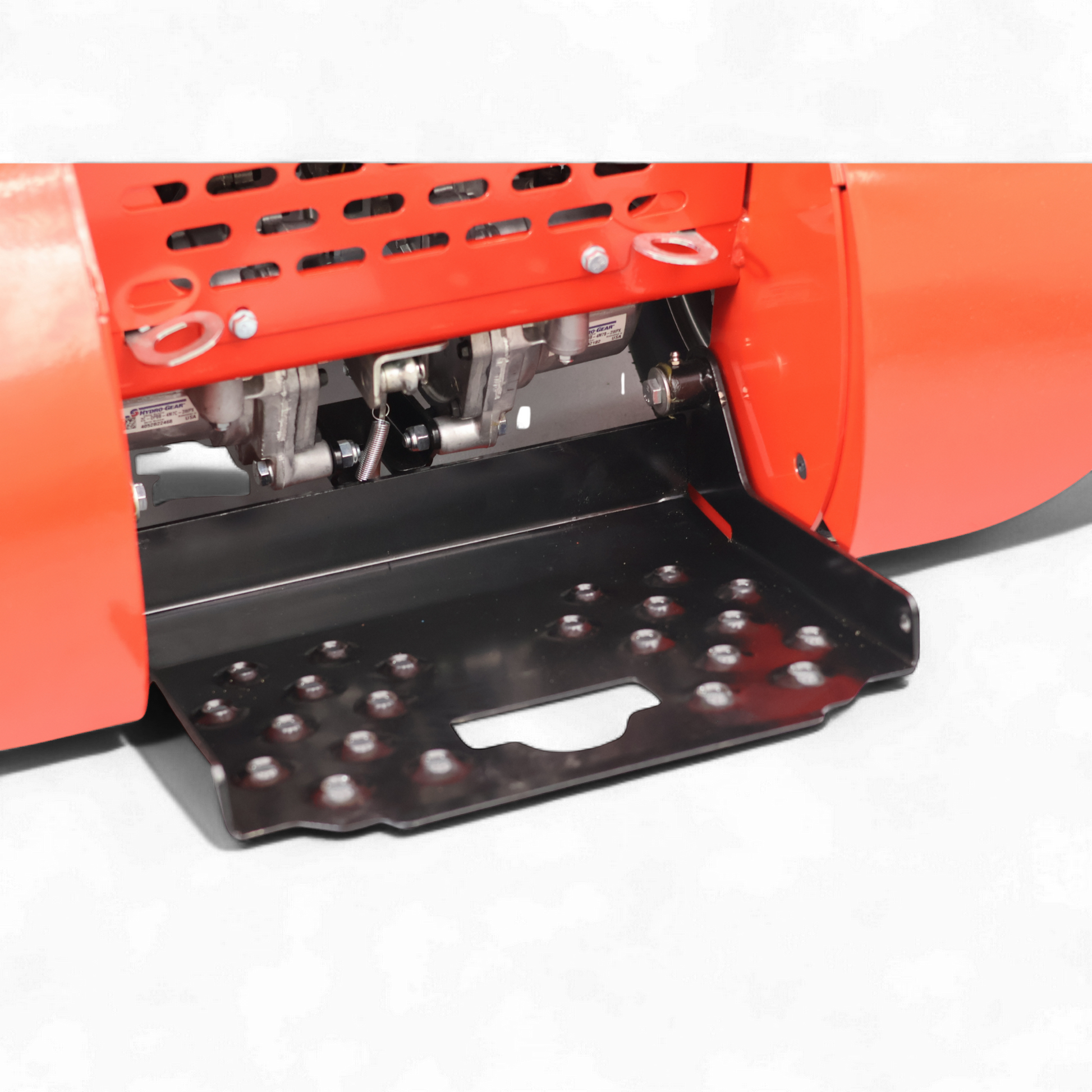 La machine est alimentée par un gros moteur à essence de 27 CV et 810 cm3 de la marque américaine Briggs&Stratton avec un démarreur à clé électrique.
